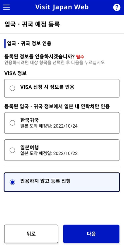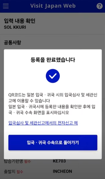 12 . 등록 완료 후 입국,귀국 수속으로 돌아가기 선택
